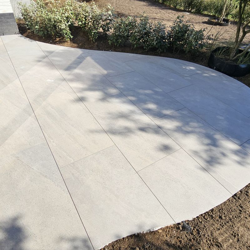 Met grootformaat tegels creëer ik een terras met een strakke, moderne uitstraling. Deze tegels zorgen voor een ruimtelijk effect en een minimalistische look door het beperkte aantal voegen. Daarnaast zijn ze duurzaam, onderhoudsvriendelijk en bestand tegen alle weersomstandigheden, waardoor ze perfect zijn voor buitengebruik.